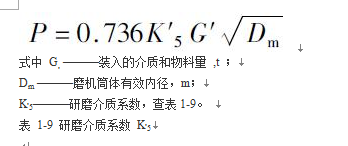 表1-5 磨機型式校正系數K,2