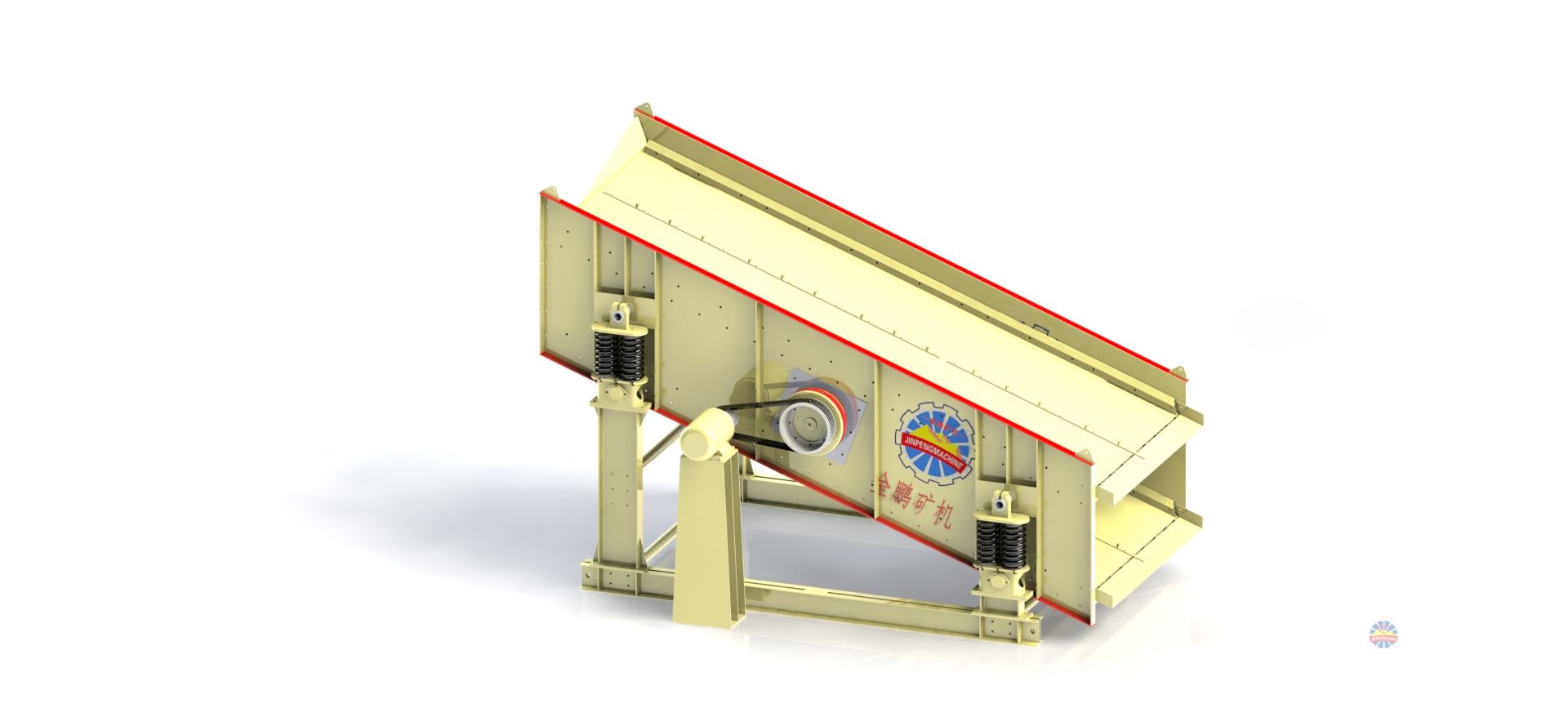 圓振動(dòng)篩主要由篩箱、篩網(wǎng)、振動(dòng)器、減振彈簧、支架、電動(dòng)機(jī)等組成。